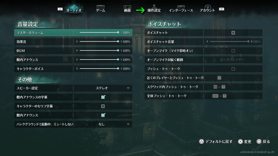 | スクワッド内プッシュ・トゥ・トーク | Alt + T |