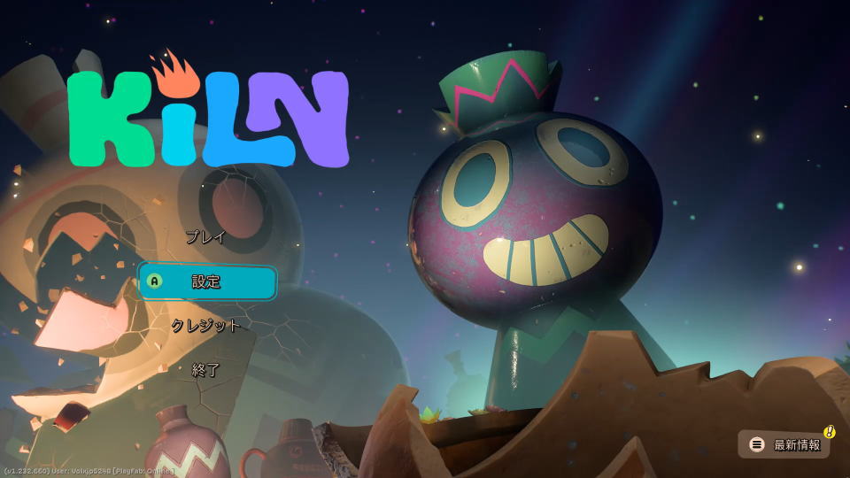 kilnの操作を確認するには、タイトルメニューから「設定」に進みます。