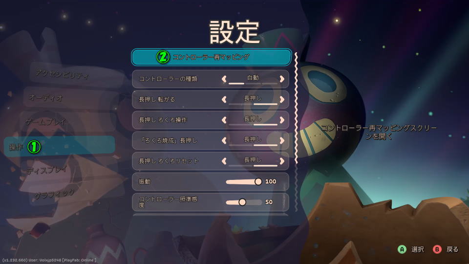設定に移動したら、左メニューの「操作」から「コントローラー再マッピング」を選択します。
