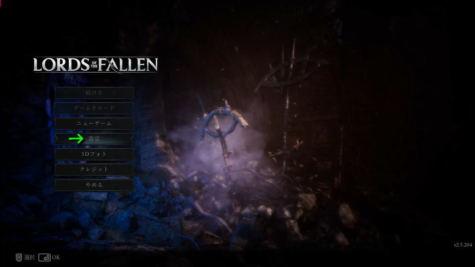Lords of the Fallenの操作を確認するには、タイトルメニューから「設定」に進みます。