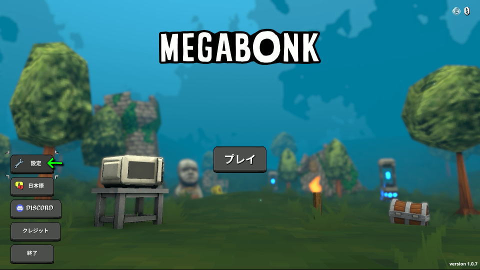 Megabonkの操作を確認するには、タイトルメニューから「設定」に進みます。