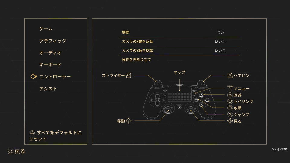 MIO: Memories in Orbitの「コントローラー設定」です。