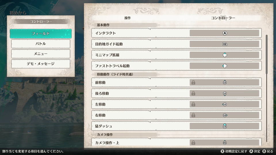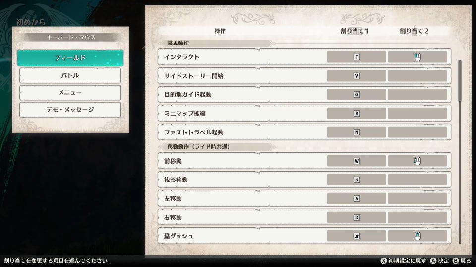 | [フィールド] | カメラ操作・右 | カーソル右 |