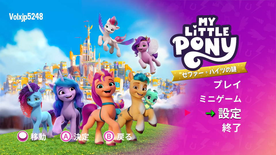 マイリトルポニーの操作を確認するには、日本語化済みのタイトルメニューから「設定」に進みます。