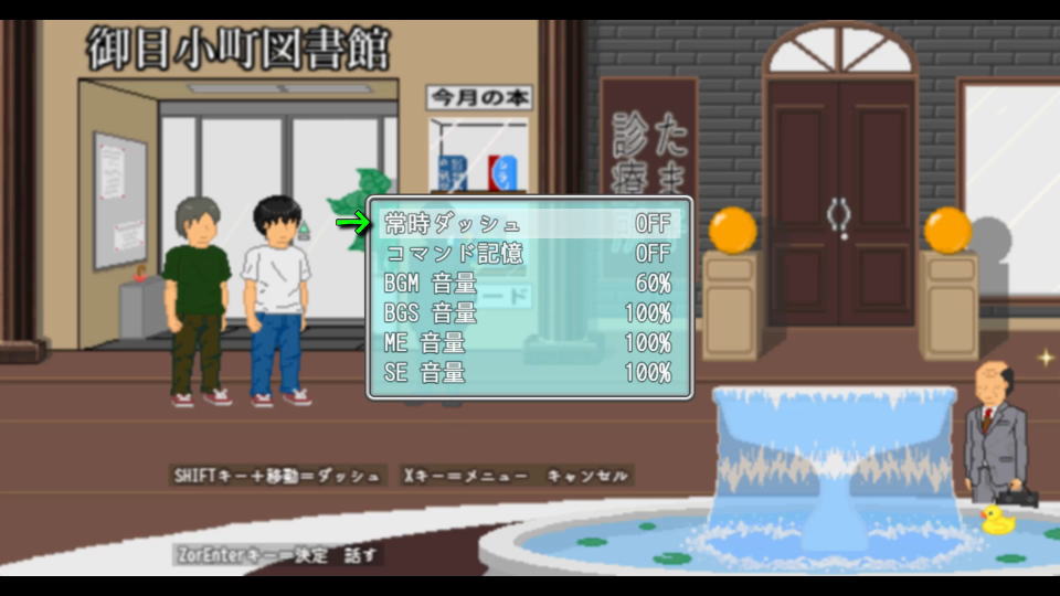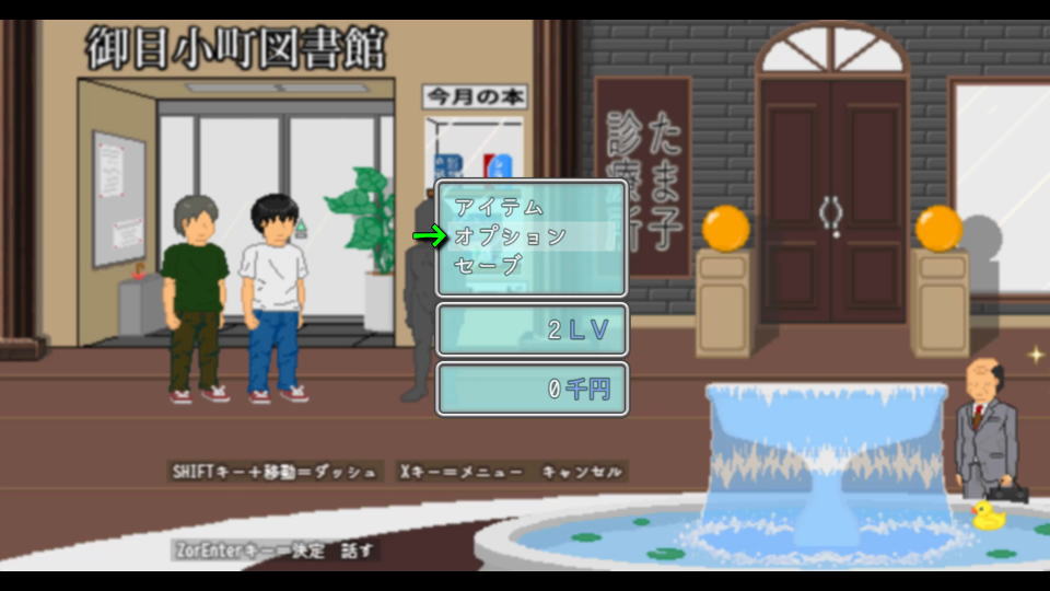 おじさんの夏休みをプレイ中に「XまたはEsc」を押すと、メニューが開きます。