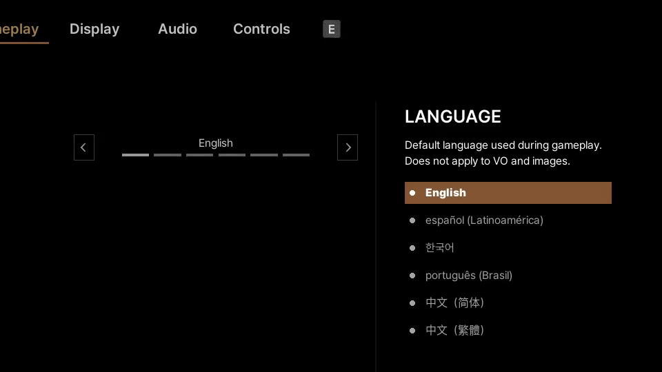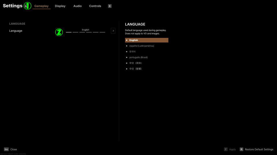 Settingsに移動したら「Gameplay」から『Language』へと進み、任意の言語を選択します。