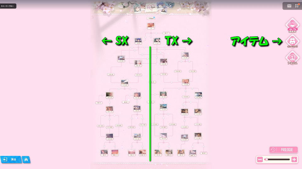 逆に「TXAI」であれば右側のルートで、かつアルカナに関連するシナリオです。