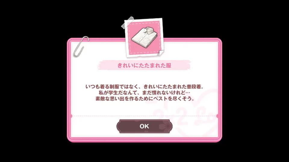 | SXAI:02 - ドキドキの新学期スピーチ | きれいにたたまれた服を着る 分かった。隣に座ろう | - |