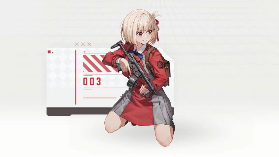 ✔️使用武器:SMG 制圧用サブマシンガン喫茶リコリコでは、自称・看板娘として明るく元気に働いている。