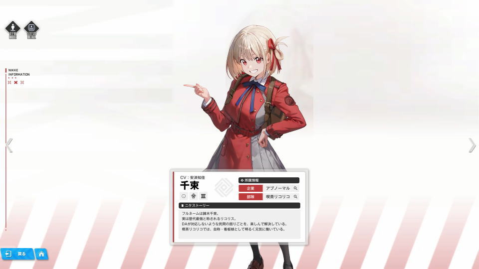 今回の記事では喫茶リコリコの自称・看板娘である「錦木千束」の性能や、スキルについて解説します。