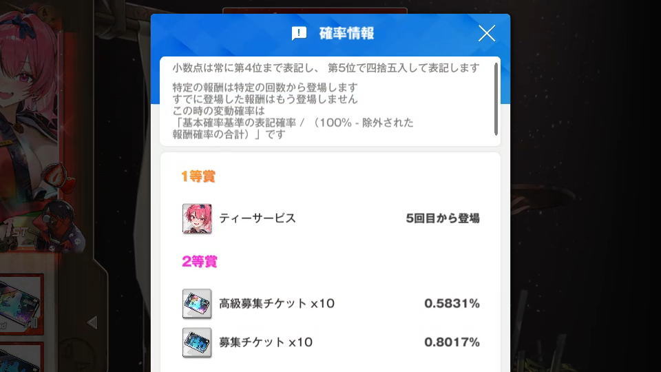 限定コスチューム「ティーサービス」は5回目から排出されるため、運が良ければ早めに入手できます。
