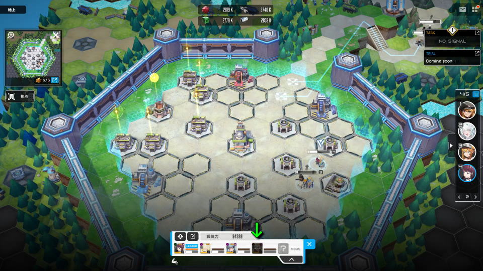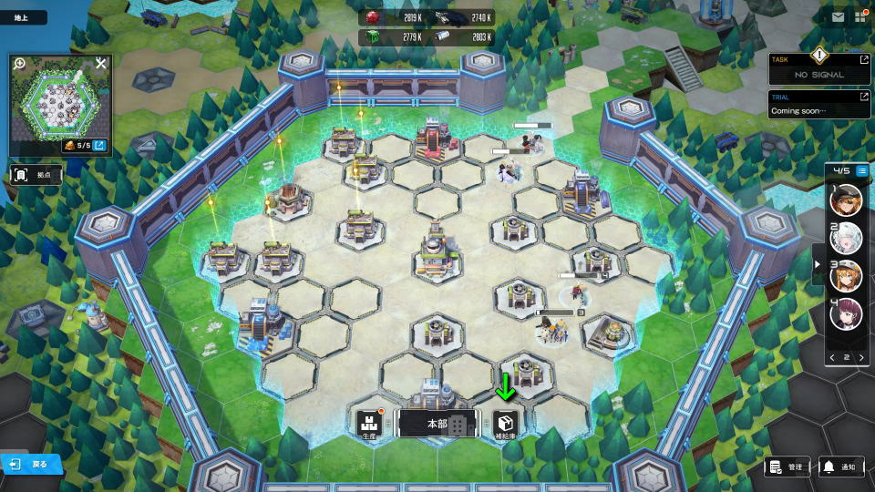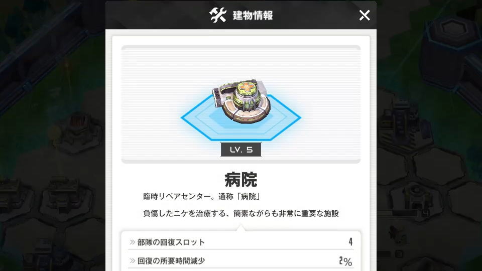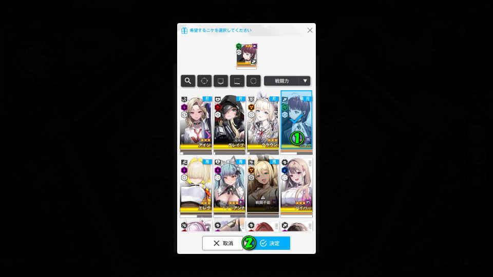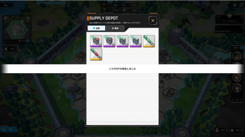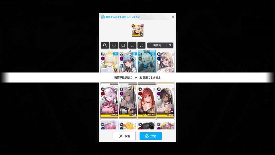 部隊全員が戦闘不能になっている場合は部隊回復ではなく、④で示した「ニケ回復」を行う必要があります。
