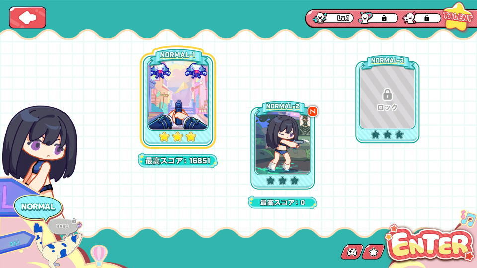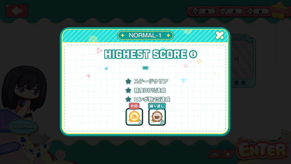 - ノーマルステージとハードステージどちらかの合計スコアが高いほうが記録される