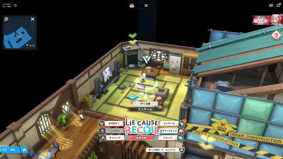 しかし専用マップ下部にある、アイコン「ミニゲーム」からも自動で移動することができます。