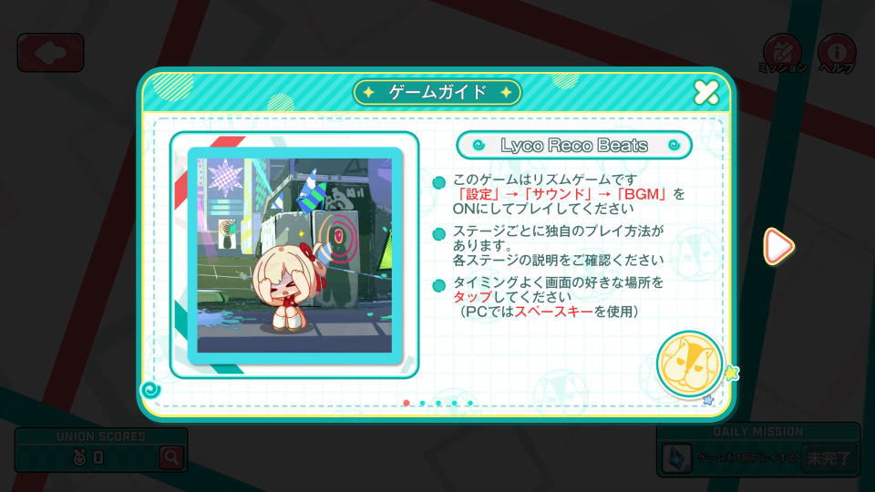 今回の記事ではこの「Lyco Reco Beats」で確認可能なミニゲームのヘルプと、進め方について解説します。