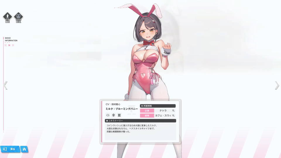 新ストーリーイベント「COINS IN RUSH」と同時実装される、火力型ニケのミルク:ブルーミングバニー。