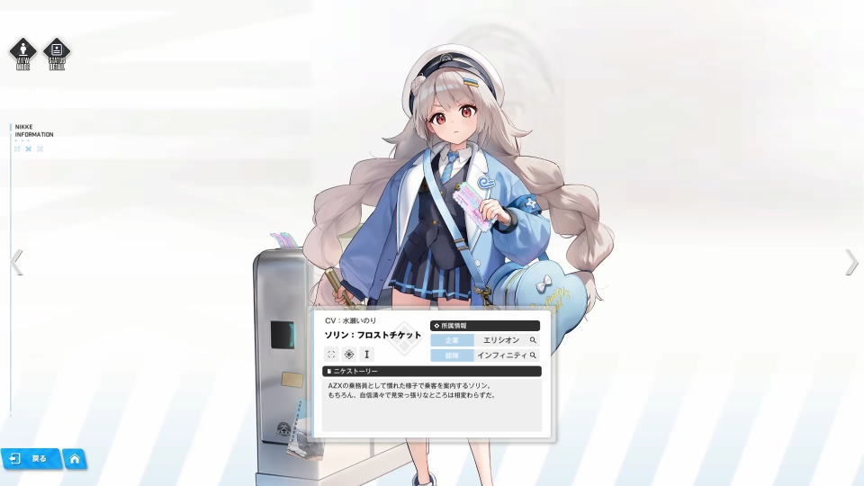 新ストーリーイベント「BLANK TICKET」と同時に実装される、支援型ニケのソリン:フロストチケット。