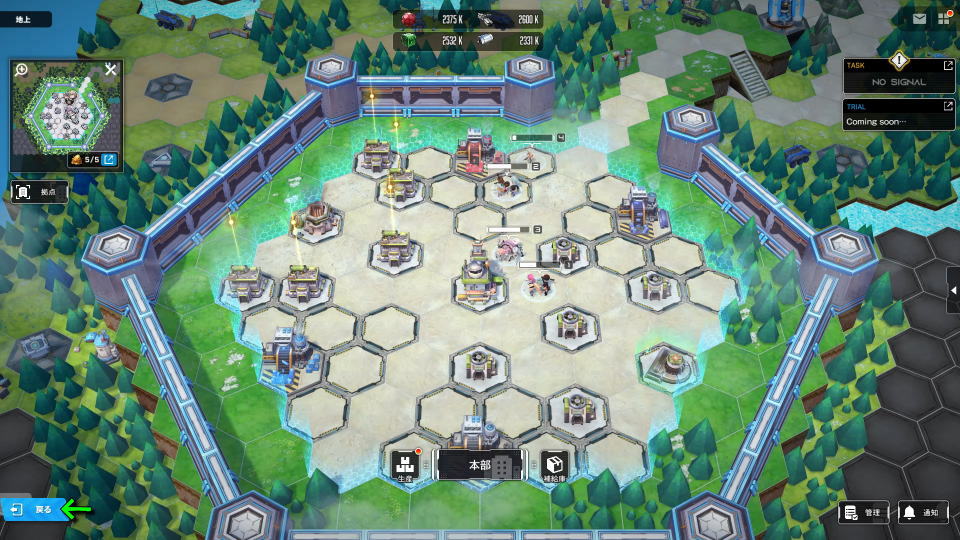 つぎに部隊情報のウィンドウが閉じたら、画面左下にある「戻る」を選択します。