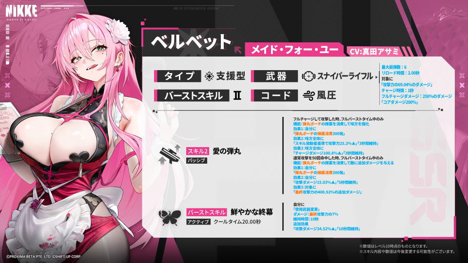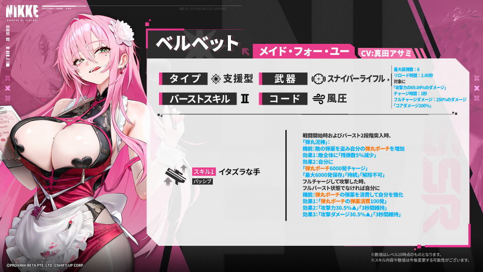 今回の記事では味方の攻撃能力を強化するSSRニケ「ベルベット」の性能や、スキルについて解説します。