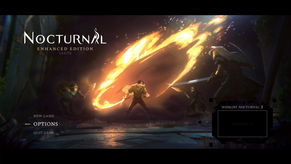 Nocturnalを日本語化するには、タイトルメニューから「OPTIONS」に進みます。
