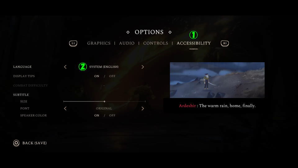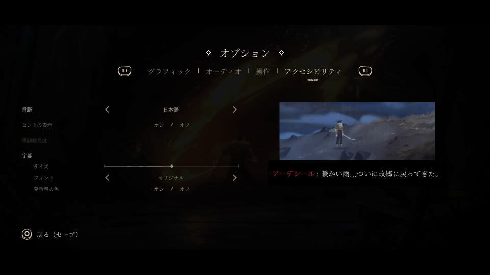 OPTIONSに移動したら「ACCESSIBILITY」の『LANGUAGE』から「日本語」を選択します。