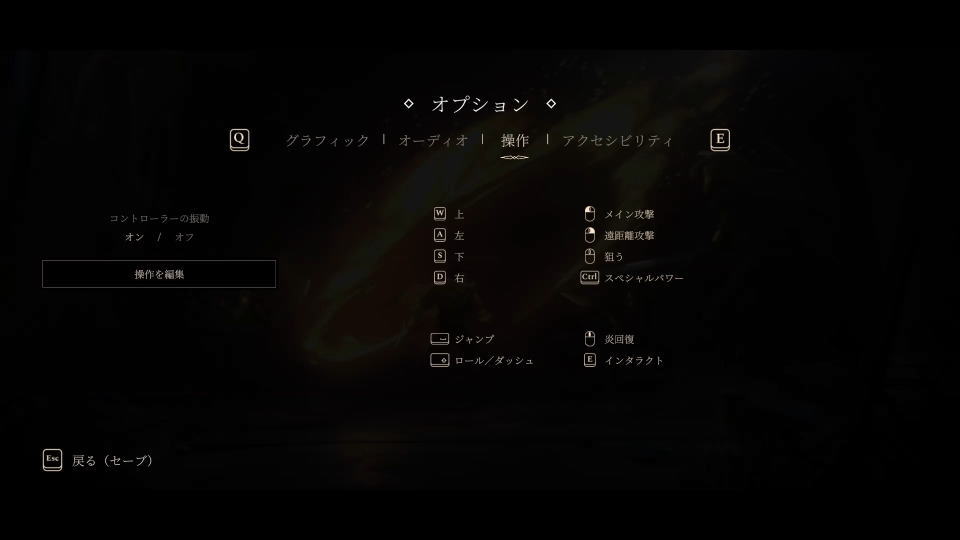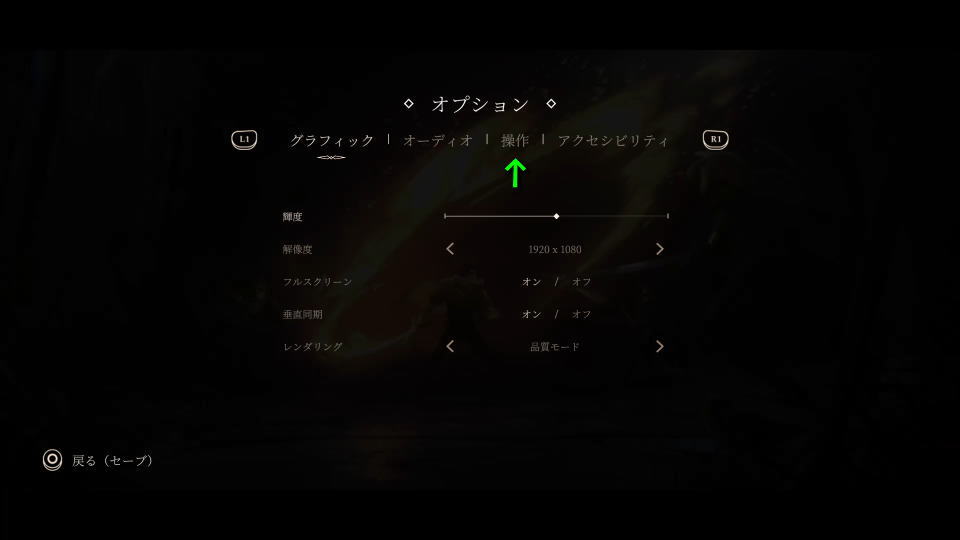 Nocturnalの操作を確認するには、日本語化済みのタイトルメニューから「オプション」に進みます。