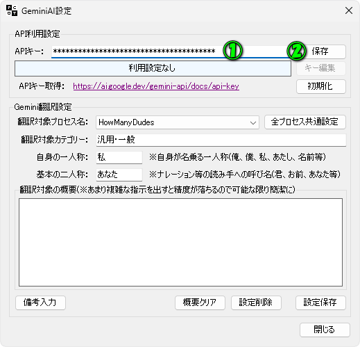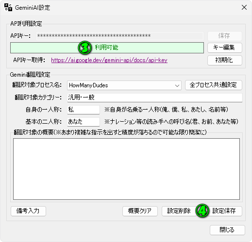 APIキーをコピーした結果『利用可能』と表示されたら、右下の「設定保存」を押して画面を閉じます。