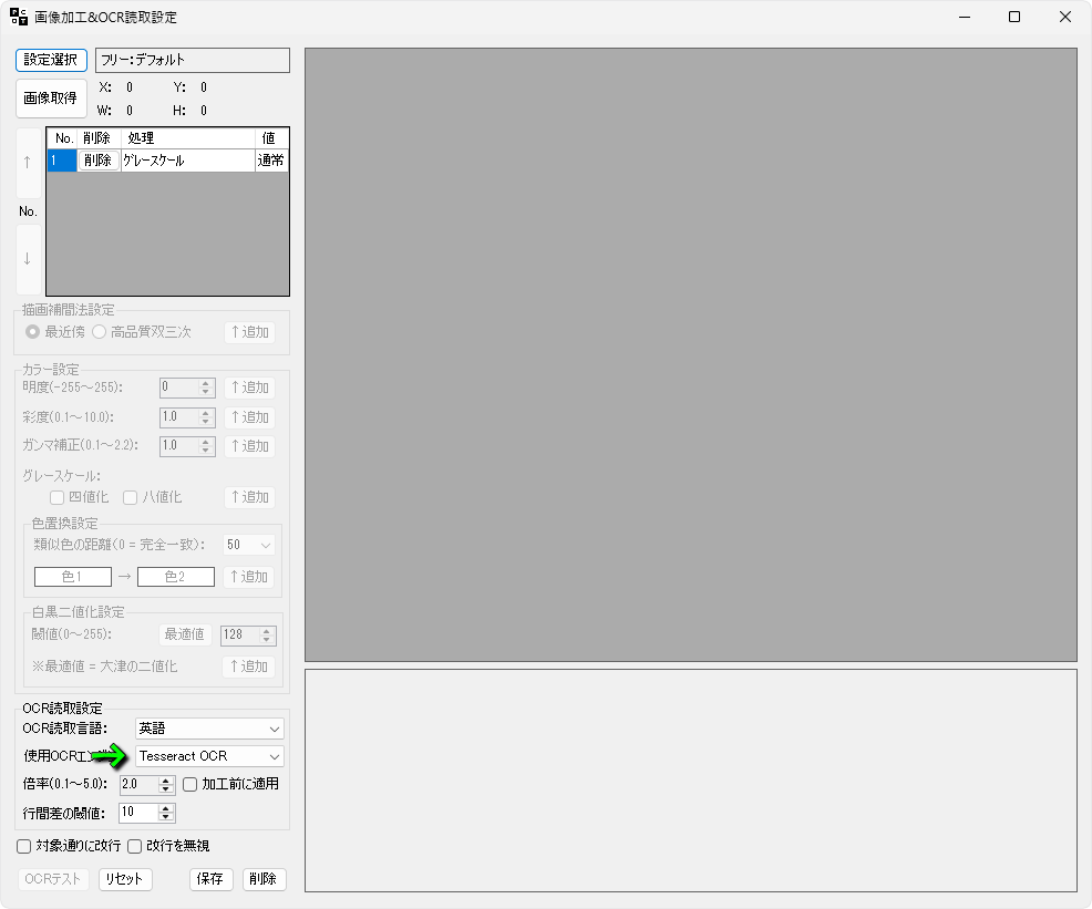 設定の『OCR読取設定』で、使用OCRエンジンに「Tesseract OCR」を指定して「保存」します。