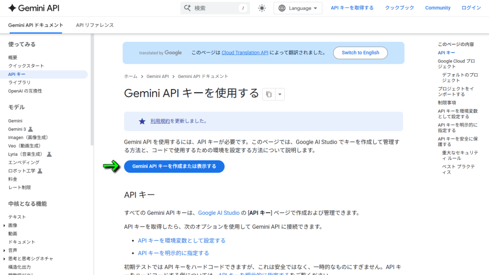 図示しているURL「https://ai.google.dev/gemini-api/docs/api-key」にアクセスします。