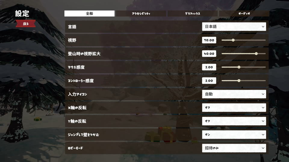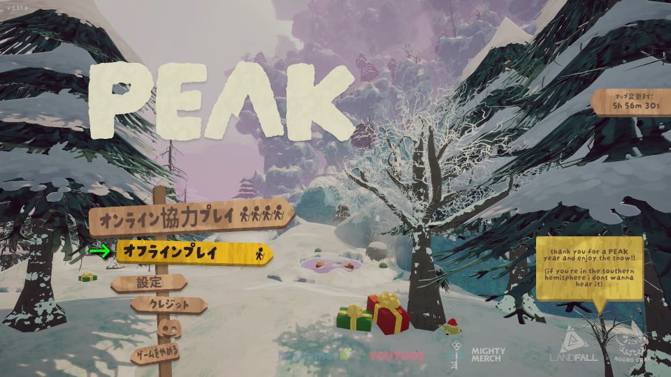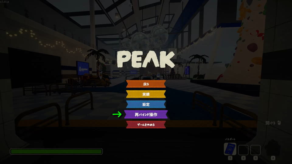 PEAKの操作を確認するには、日本語化済みのタイトルメニューからゲームを開始します。