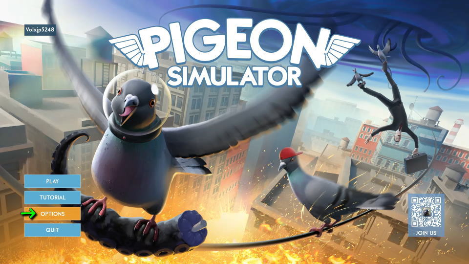 Pigeon Simulatorの操作を確認するには、タイトルメニューから「OPTIONS」に進みます。