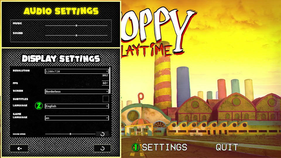 ポピー プレイタイムの操作を確認するには、起動後のタイトルメニューから「設定」に進みます。
