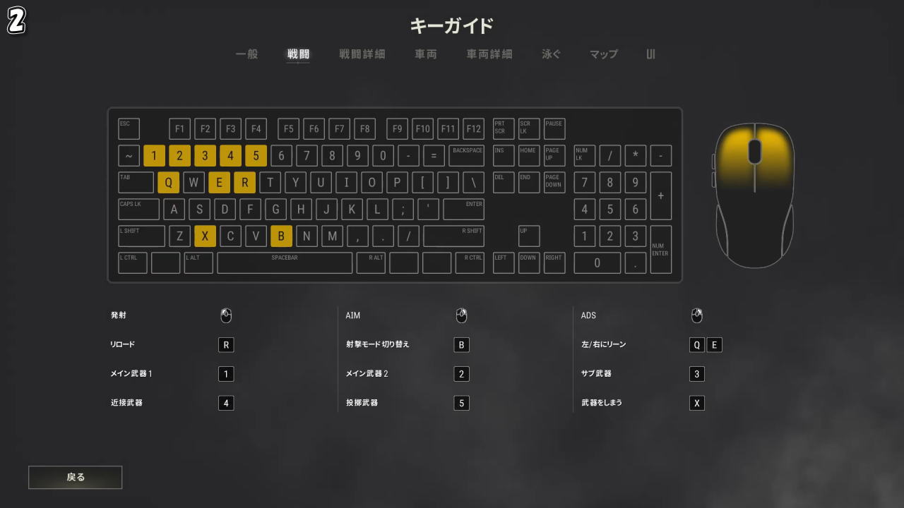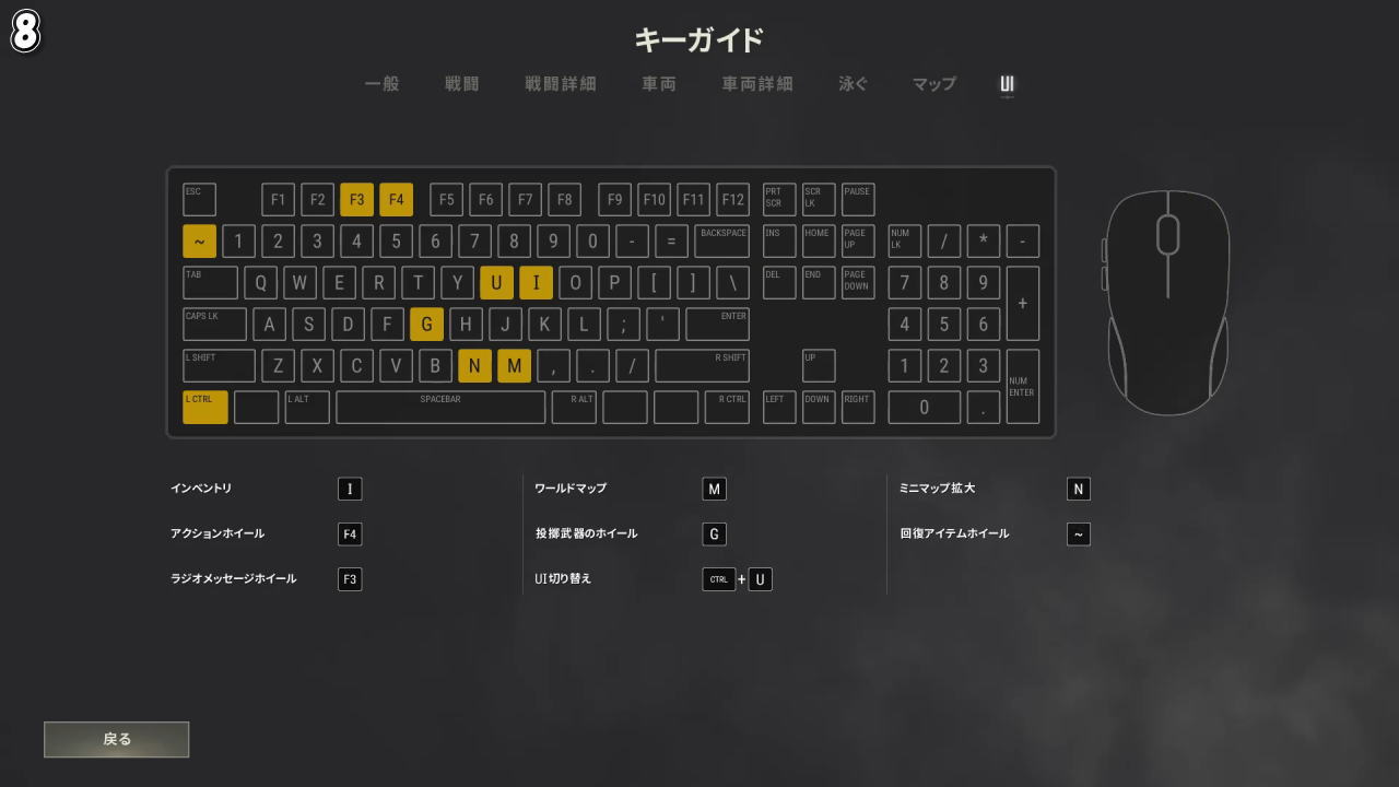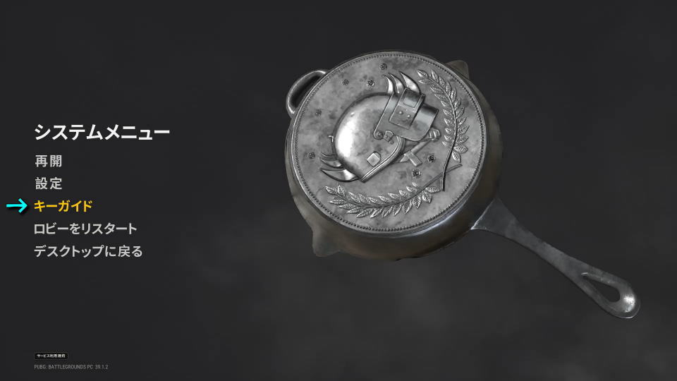 PUBGのキーガイドは、前述した「システムメニュー」の中から確認できます。