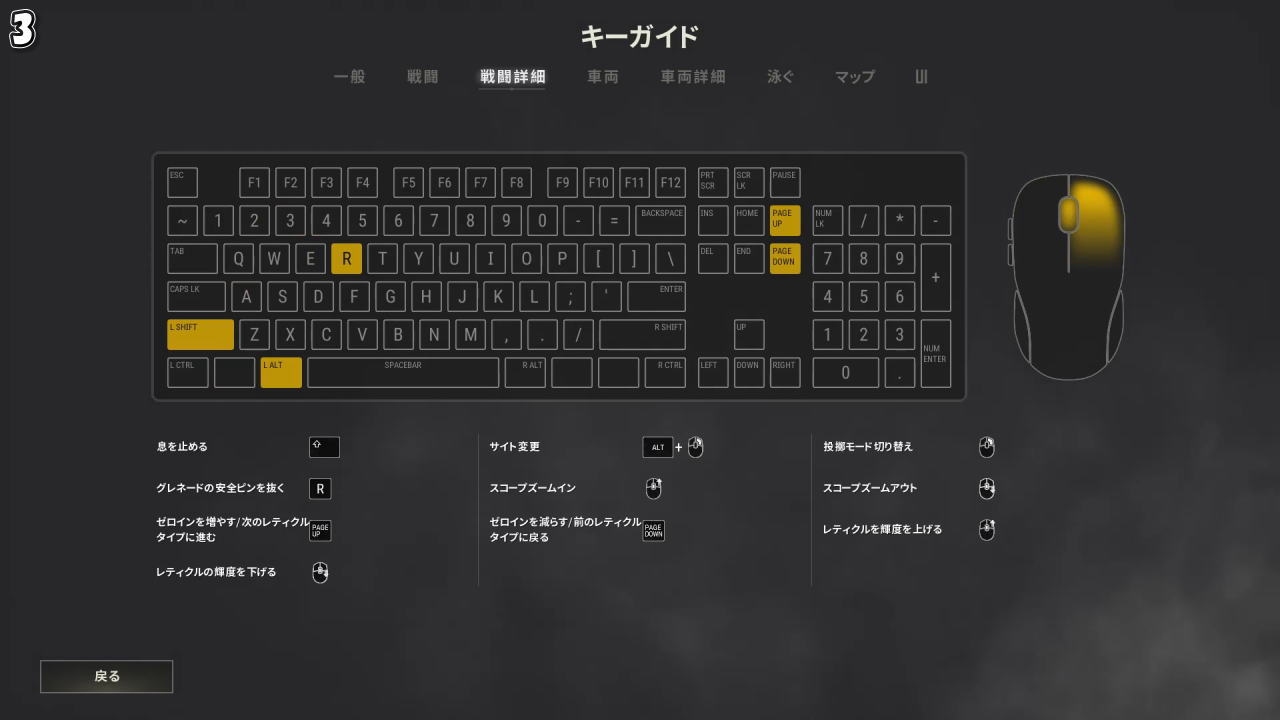 | [戦闘] | ゼロインを増やす / 次のレティクルタイプに進む | Page Up |