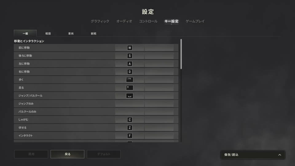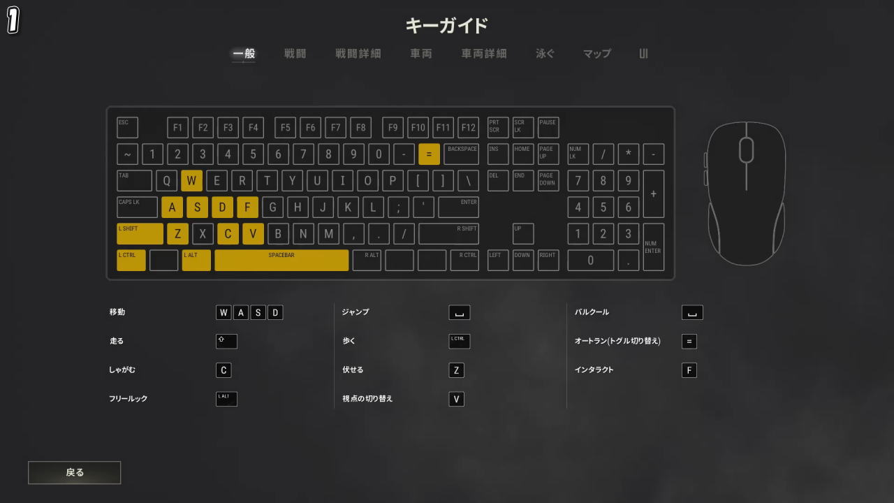 PUBG: BATTLEGROUNDSの「キーボード設定」です。