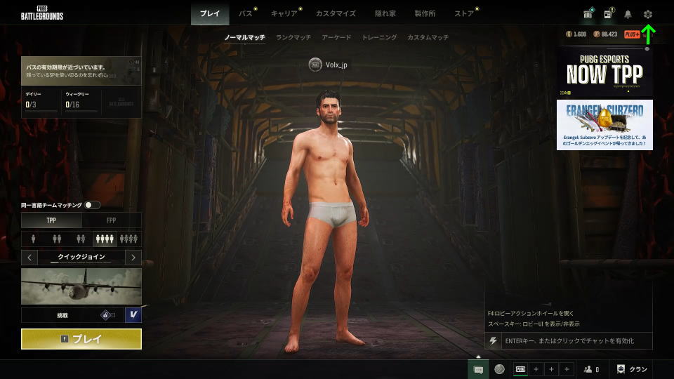 PUBG: BATTLEGROUNDSの操作を確認するには、ロビー右上にある「システムメニュー」に進みます。