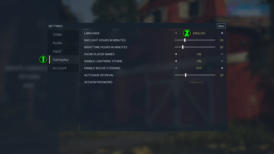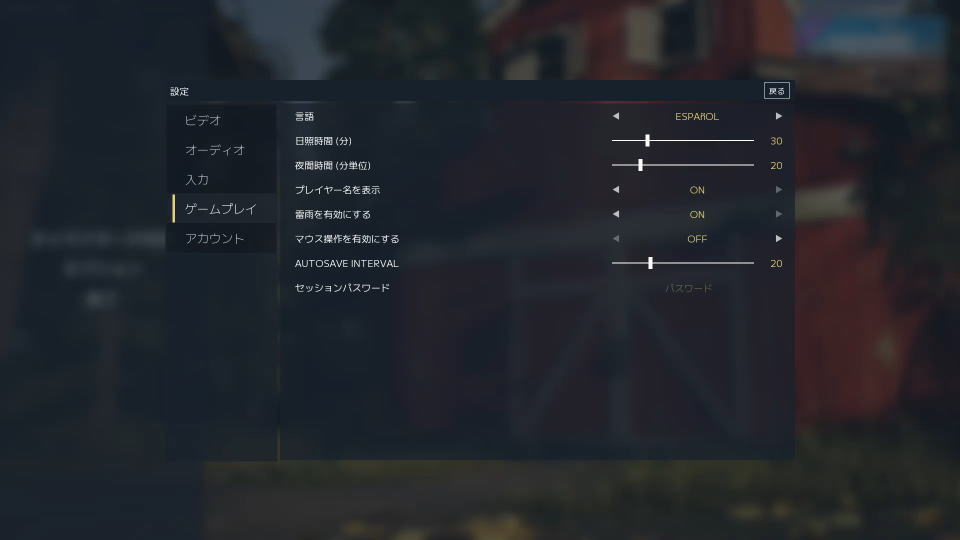 OPTIONSに移動したら「Gameplay」タブを開き、LANGUAGEの中にある「ESPAÑOL」を選択します。