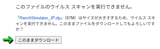 RanchSimulator_JP.zipに移動したら、図示したボタンから「ダウンロード」を実行します。