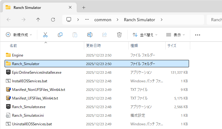 Ranch Simulatorのインストールフォルダが開いたら「Ranch_Simulator」を開いていき、