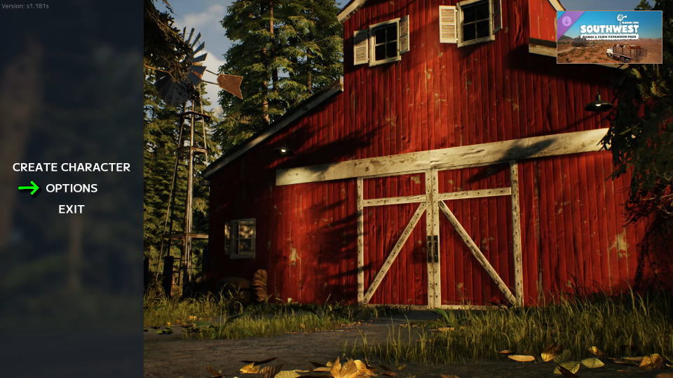 日本語化ファイルのインストールが終わったら、Ranch Simulatorを起動して「OPTIONS」を選択します。