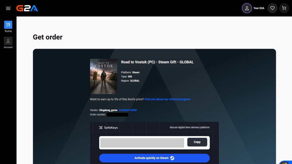 今回の検証に必要な「Road to Vostok」を入手したショップは「G2A」です。