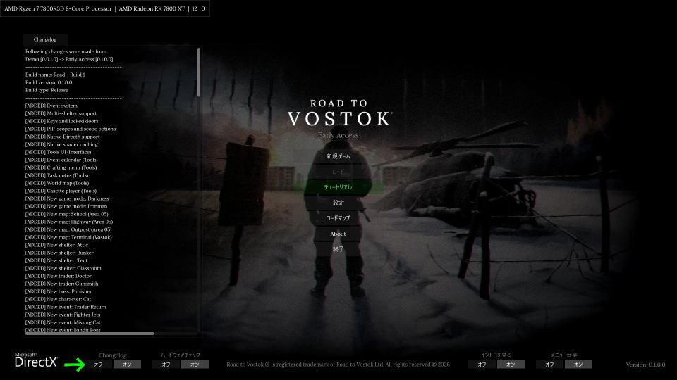 Road to Vostokの日本語化を確認するため、Steamから「Road to Vostok」を起動します。
