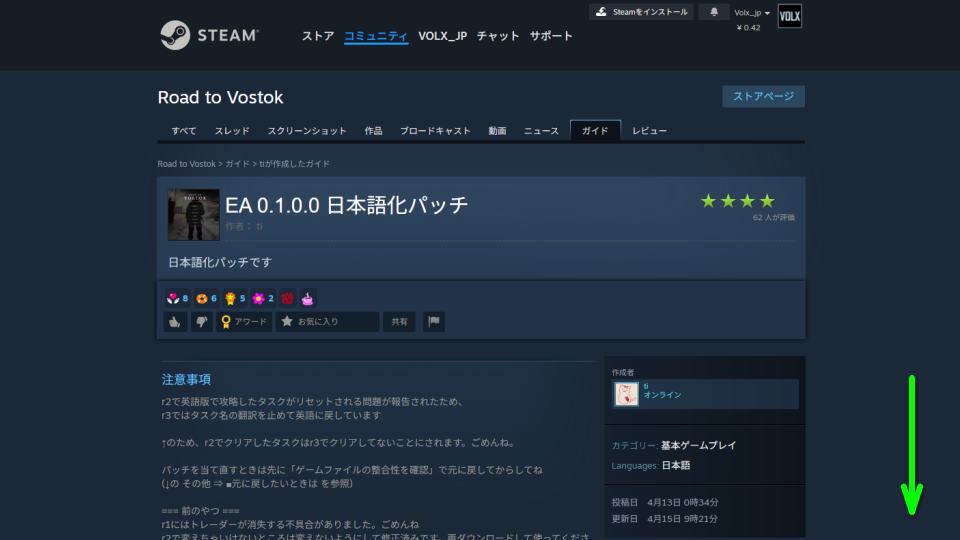 EA 0.1.0.0 日本語化パッチに移動したら、画面を下にスクロールします。