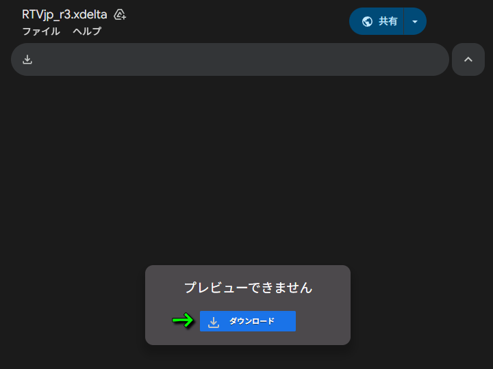 RTVjp_r3.xdeltaに移動したら『プレビューできません』の直下にある「ダウンロード」を選択します。