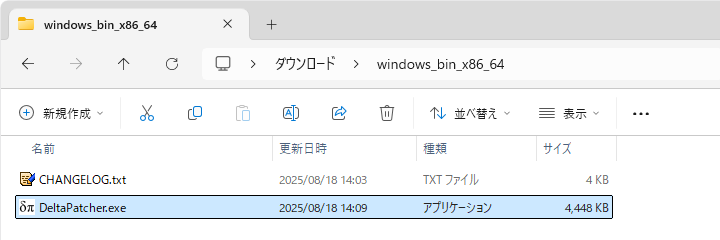 解凍したフォルダの中にある「DeltaPatcher.exe」を実行します。