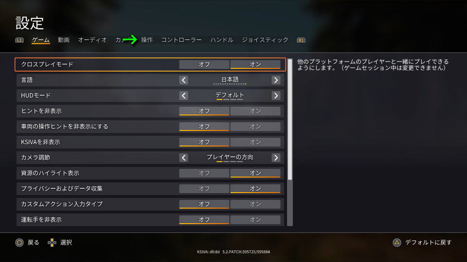 | カメラを切り替える、シネマティックカメラ(長押し) | R3 | R3 |