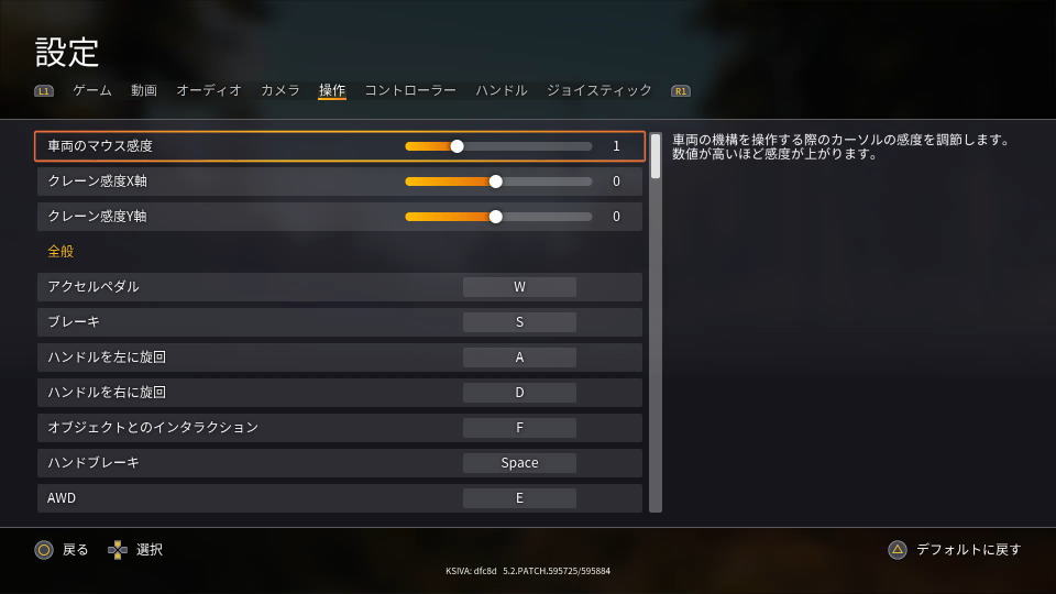 | 車両ハンドル操作 | Lスティック左右 | Lスティック左右 |