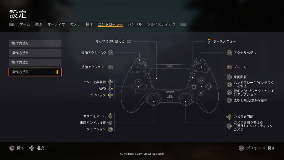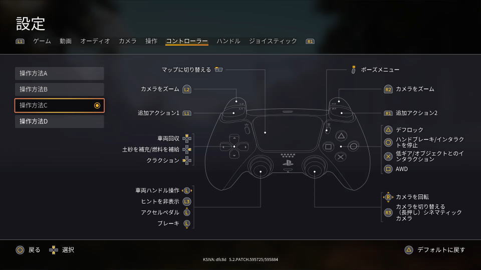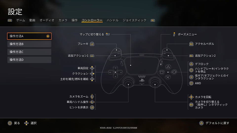 コントローラーのプリセットは「操作方法A ~ 操作方法D」までの4種類から選べます。