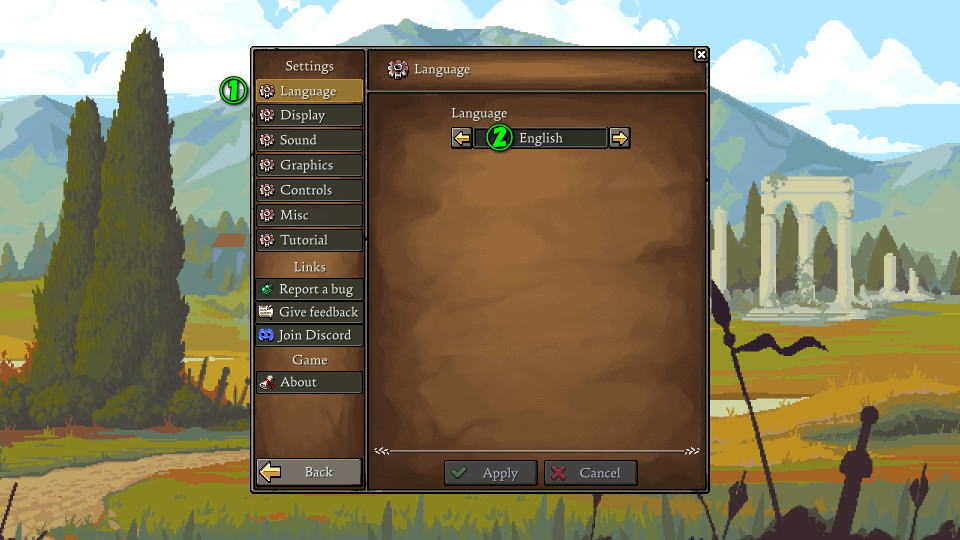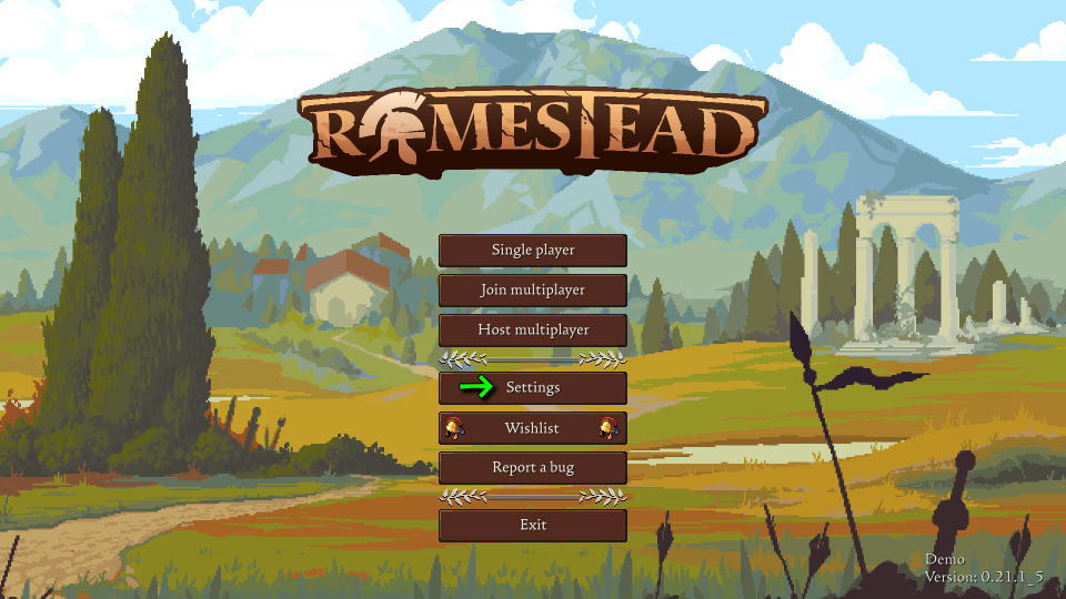 Romesteadの言語を変更するには、タイトルメニューから「Settings」に進みます。