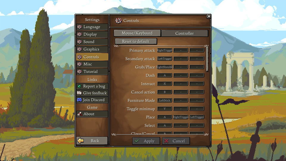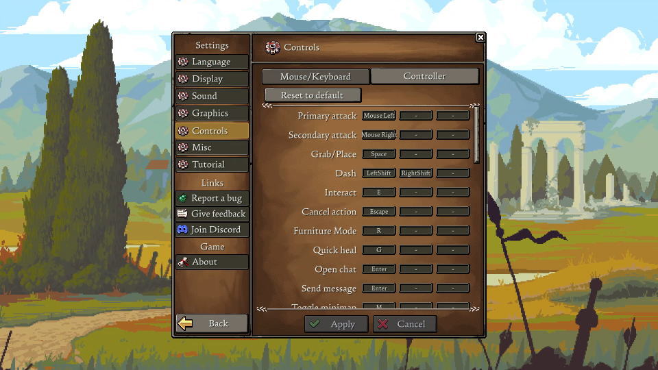 Romesteadの操作を確認するには、前述した「Settings」の中にある「Controls」に進みます。
